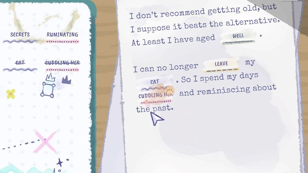 An elderly loved one has died, leaving you their estate and a letter encouraging you to sell any valuables. But when a mishap spoils their soon-to-be-published memoirs, you set out to repair the damage, piecing together their hidden past using the items you inherit.